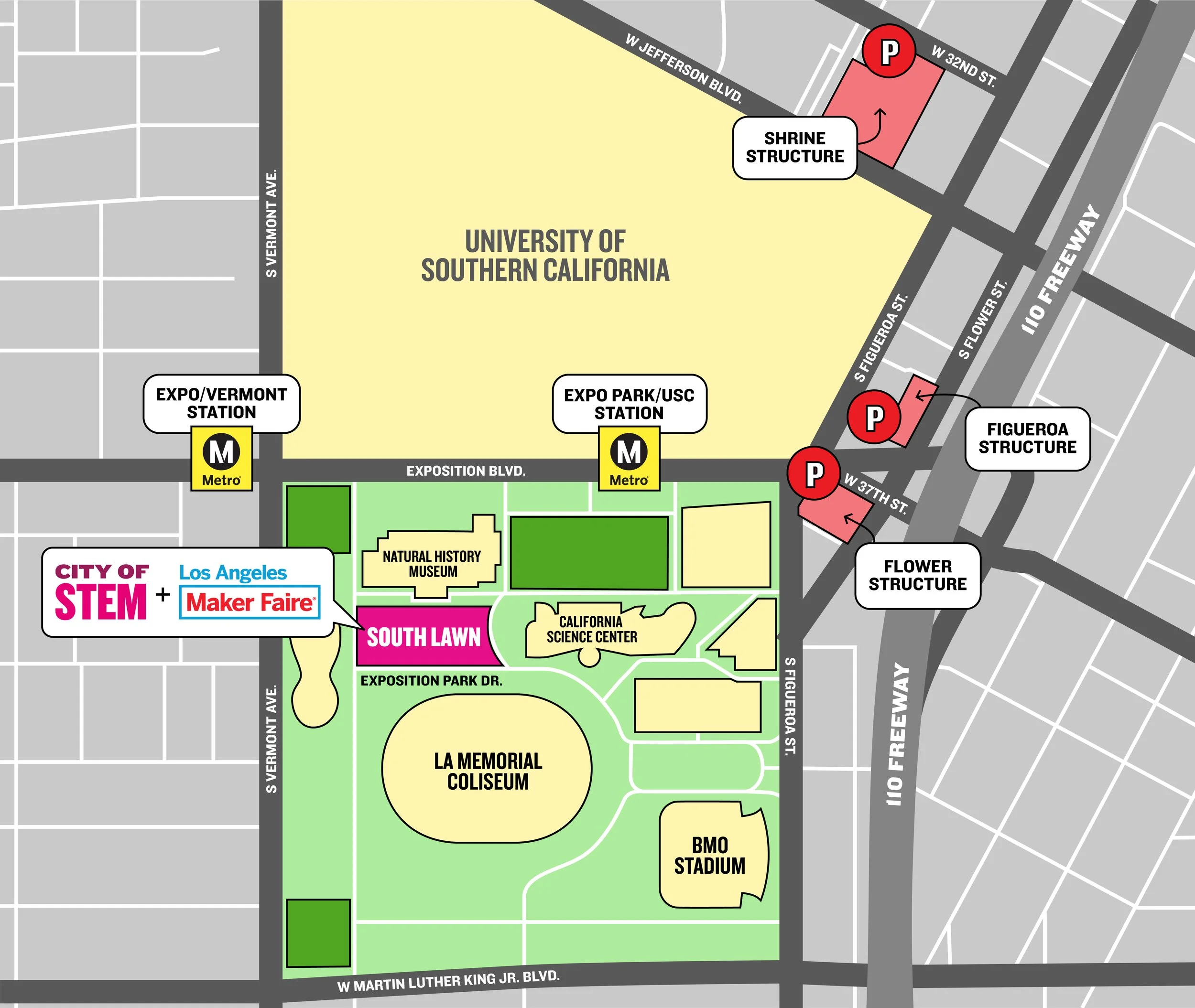 City of STEM + Los Angeles Maker Faire is located at Exposition Park South Lawn.